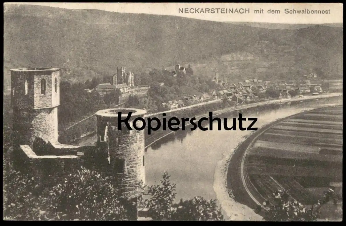 ÄLTERE POSTKARTE NECKARSTEINACH MIT BURG SCHWALBENNEST IM VORDERGRUND PANORAMA NECKAR Ansichtskarte AK cpa postcard