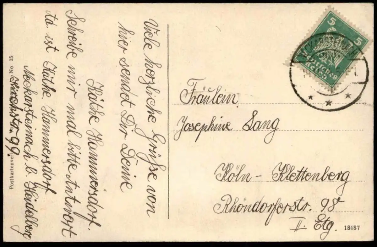 Gelaufen: 14.11.1924 mit Stempel Neckarsteinach nach Köln Klettenberg