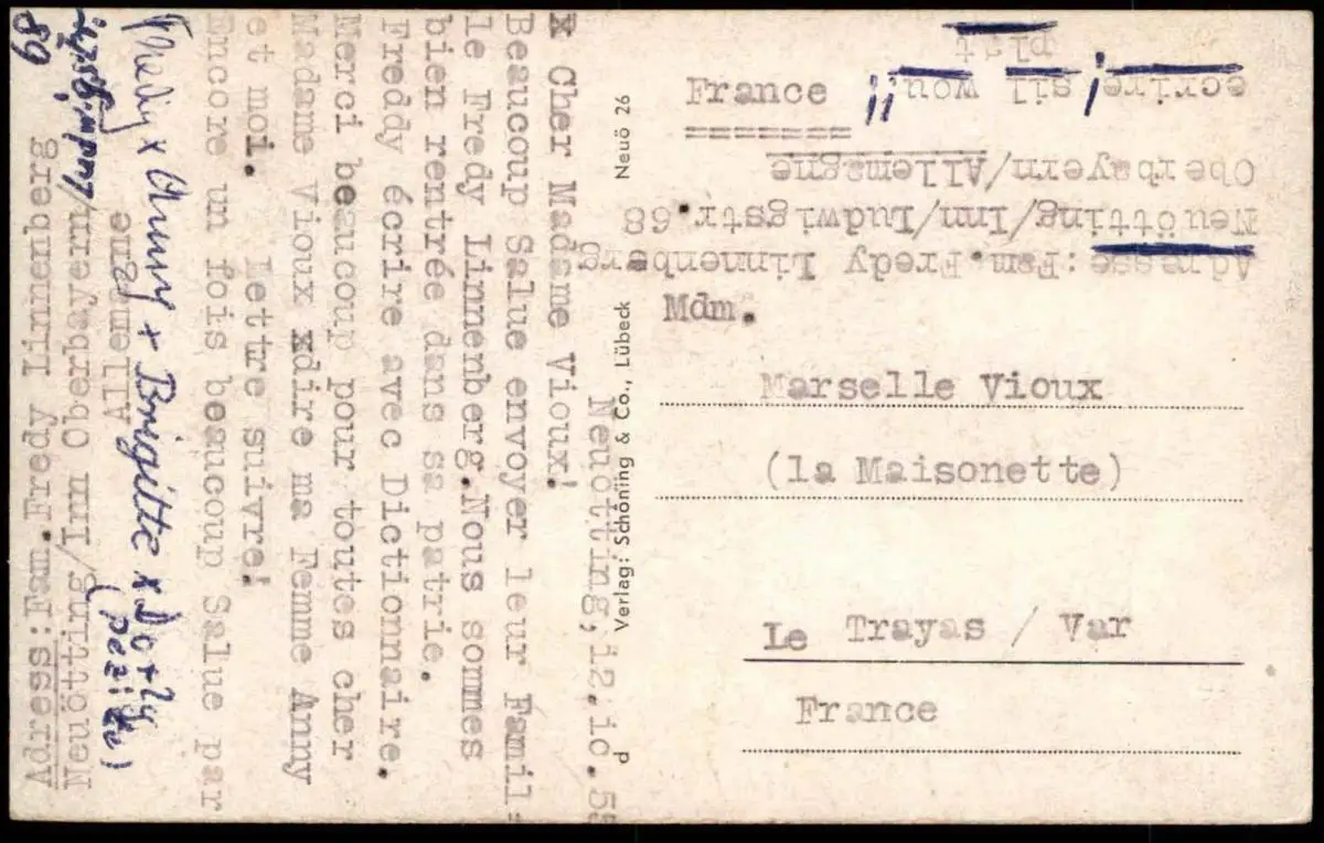 Gelaufen: beschrieben 18.10.1955 nach Frankreich