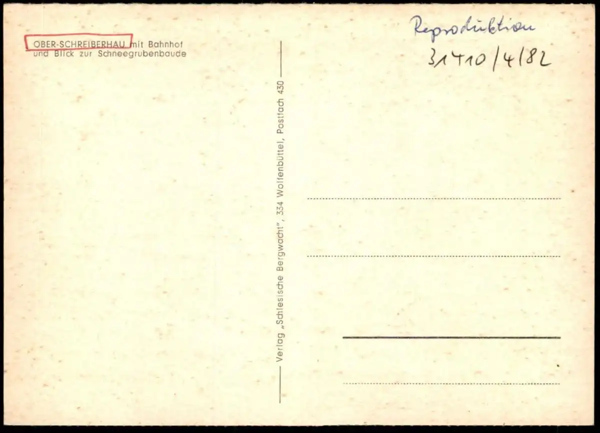 ÄLTERE POSTKARTE OBER-SCHREIBERHAU MIT BAHNHOF & BLICK ZUR SCHNEEGRUBENBAUDE RIESENGEBIRGE