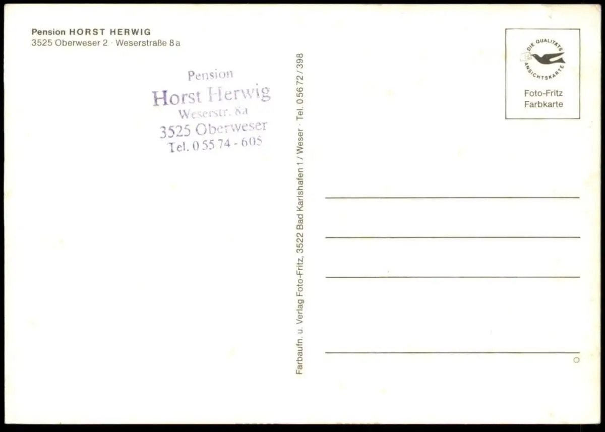 ÄLTERE POSTKARTE OBERWESER PENSION HORST HERWIG Verlag: Foto-Fritz, Bad KarlshafenGelaufen: neinErhaltung (s. Scan): gut / 915589