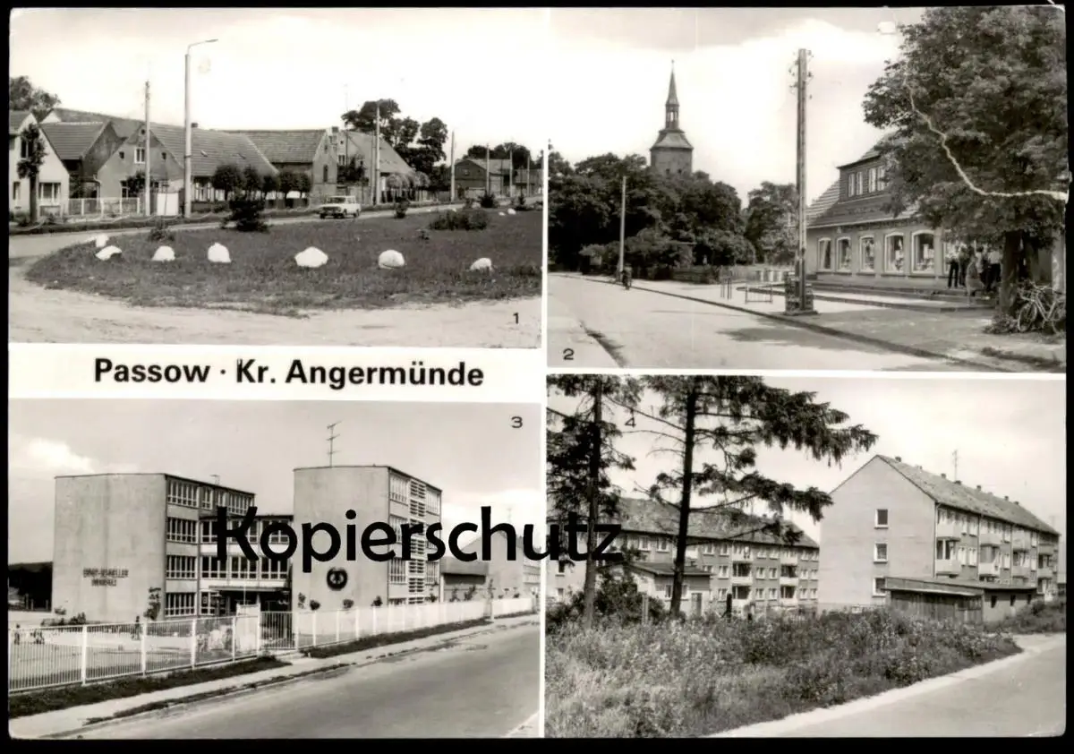 ÄLTERE POSTKARTE PASSOW KREIS ANGERMÜNDE DORFANGER EINKAUSZENTRUM ERNST SCHNELLER OBERSCHULE Ansichtskarte postcard cpa