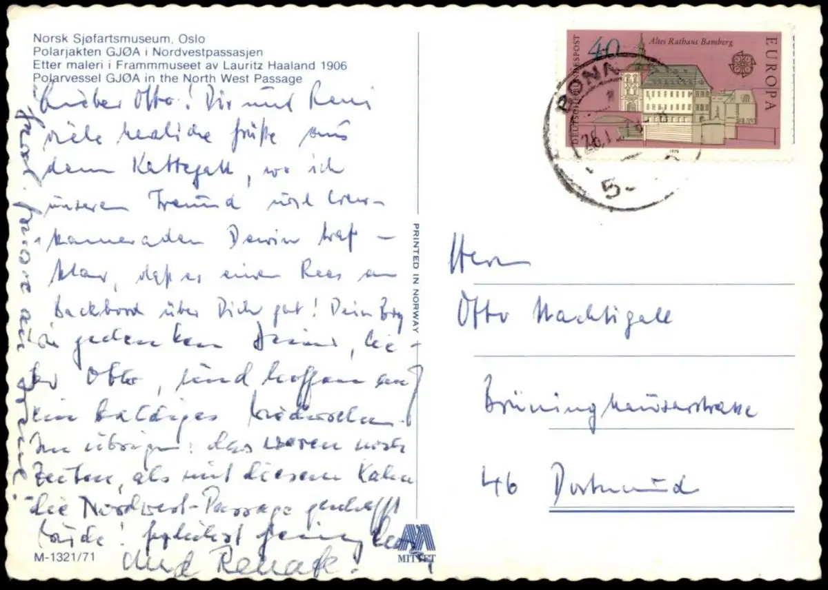 ÄLTERE POSTKARTE POJARJAKTEN GJOA I NORDVESTPASSASJEN LAURITZ HAALAND 1906 NORDWESTPASSAGE POLAR EXPEDITION NORSK SJEJARTSMUSEUM OSLOVerlag: MittetGelaufen: 26.10.1978 mit Stempel Bonn nach DortmundErhaltung (s. Scan): gut - mittel, linke untere Ecke sowie unten mittig leicht bestoßen / 918219
