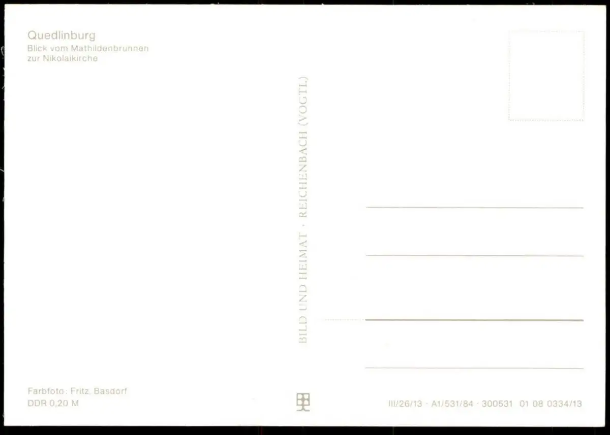ÄLTERE POSTKARTE QUEDLINBURG IM HARZ BLICK VOM MATHILDENBRUNNEN ZUR NIKOLAIKIRCHE SKODA WARTBURG TRABANTVerlag: Bild und Heimat, Reichenbach; Farbfoto: Fritz, Basdorf