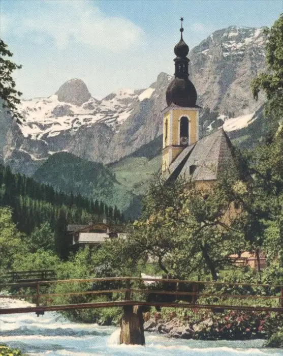 ÄLTERE POSTKARTE RAMSAU PFARRKIRCHE ST. SEBASTIAN MIT REITERALPE BEI BERCHTESGADEN cpa postcard Ansichtskarte AK church