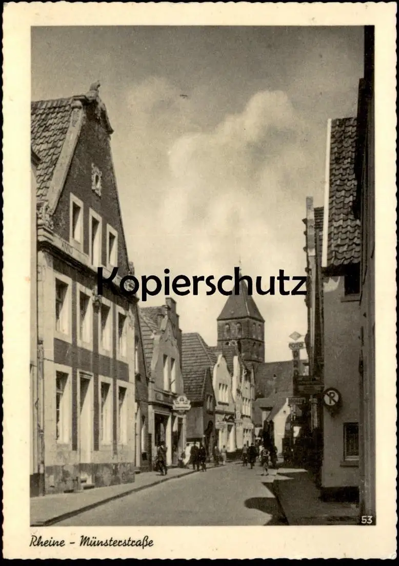 ÄLTERE POSTKARTE RHEINE MÜNSTERSTRASSE PARKEN VERBOTEN SCHILDVerlag: unbekannt