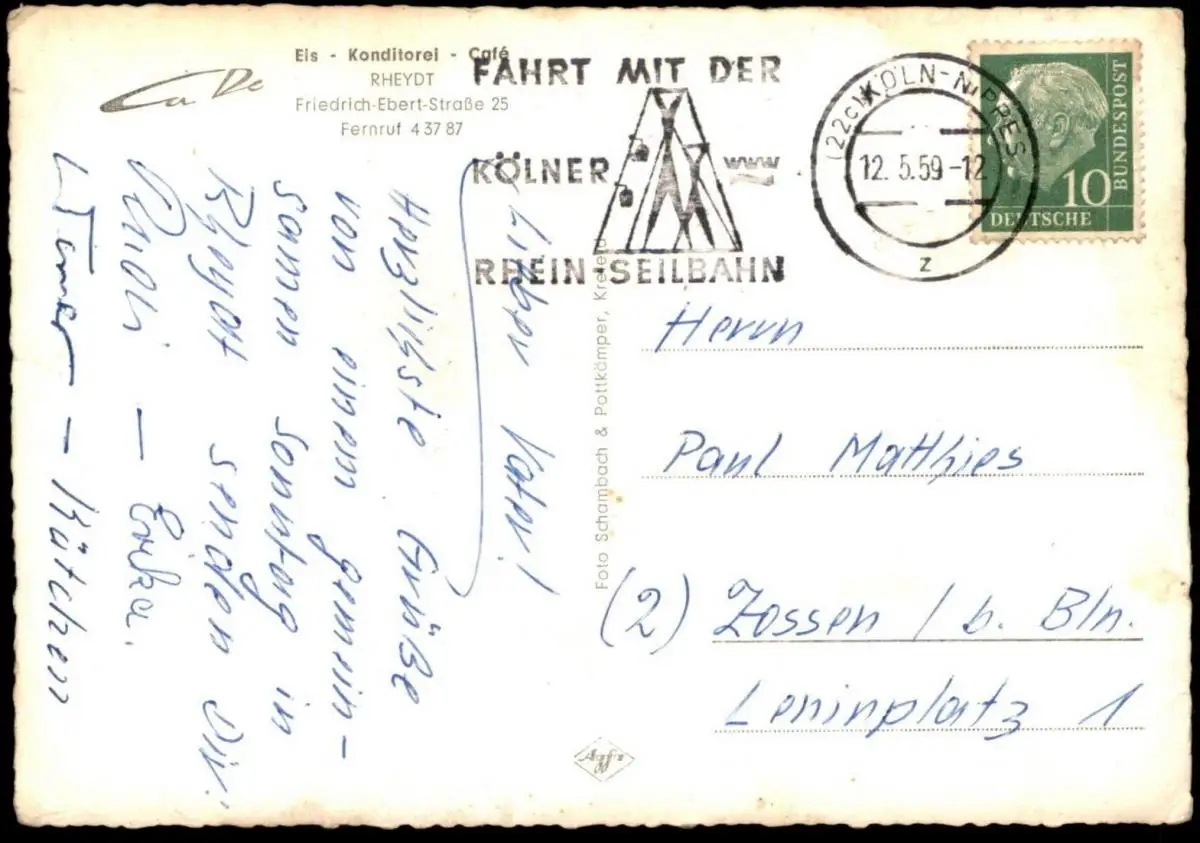 Gelaufen: 12.05.1959 mit Stempel Köln Nippes nach Zossen