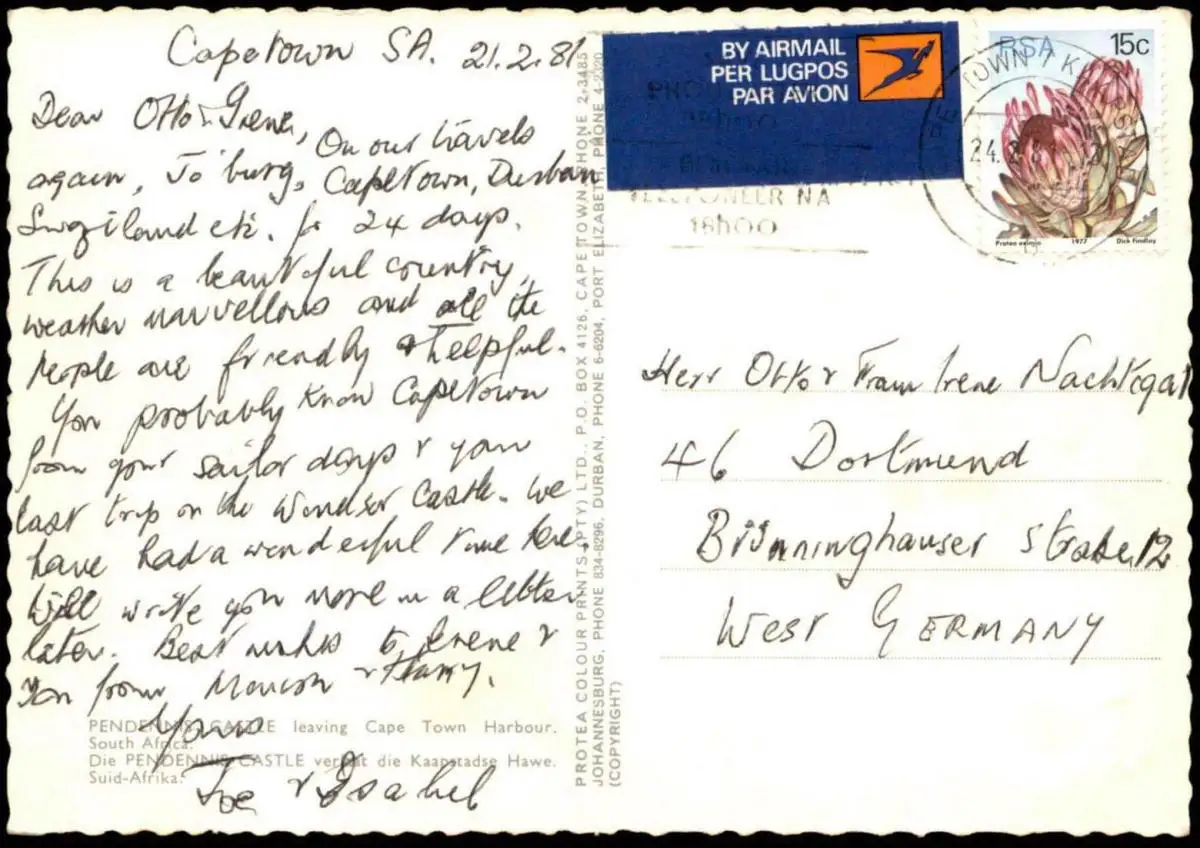 Gelaufen: 21.02.1981 mit Stempel Cape Town nach Dortmund