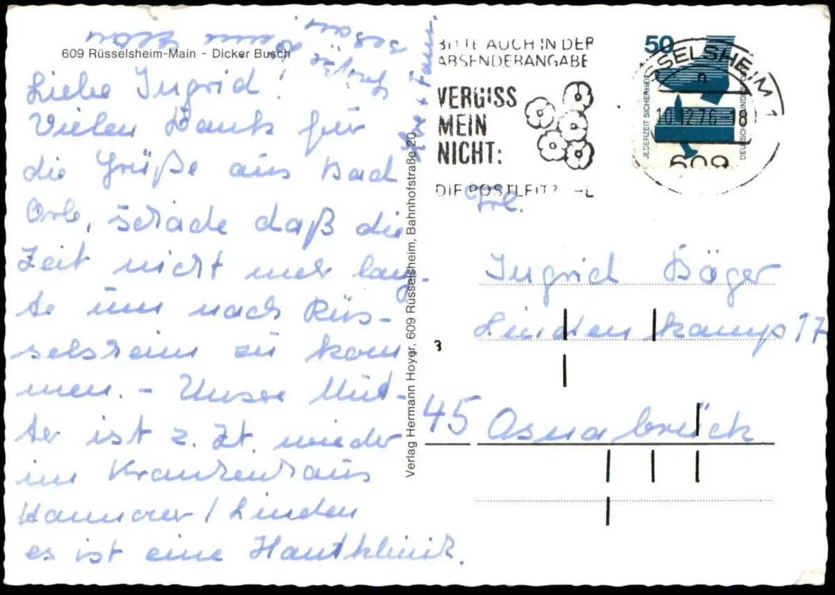 ÄLTERE POSTKARTE RÜSSELSHEIM DICKER BUSCH