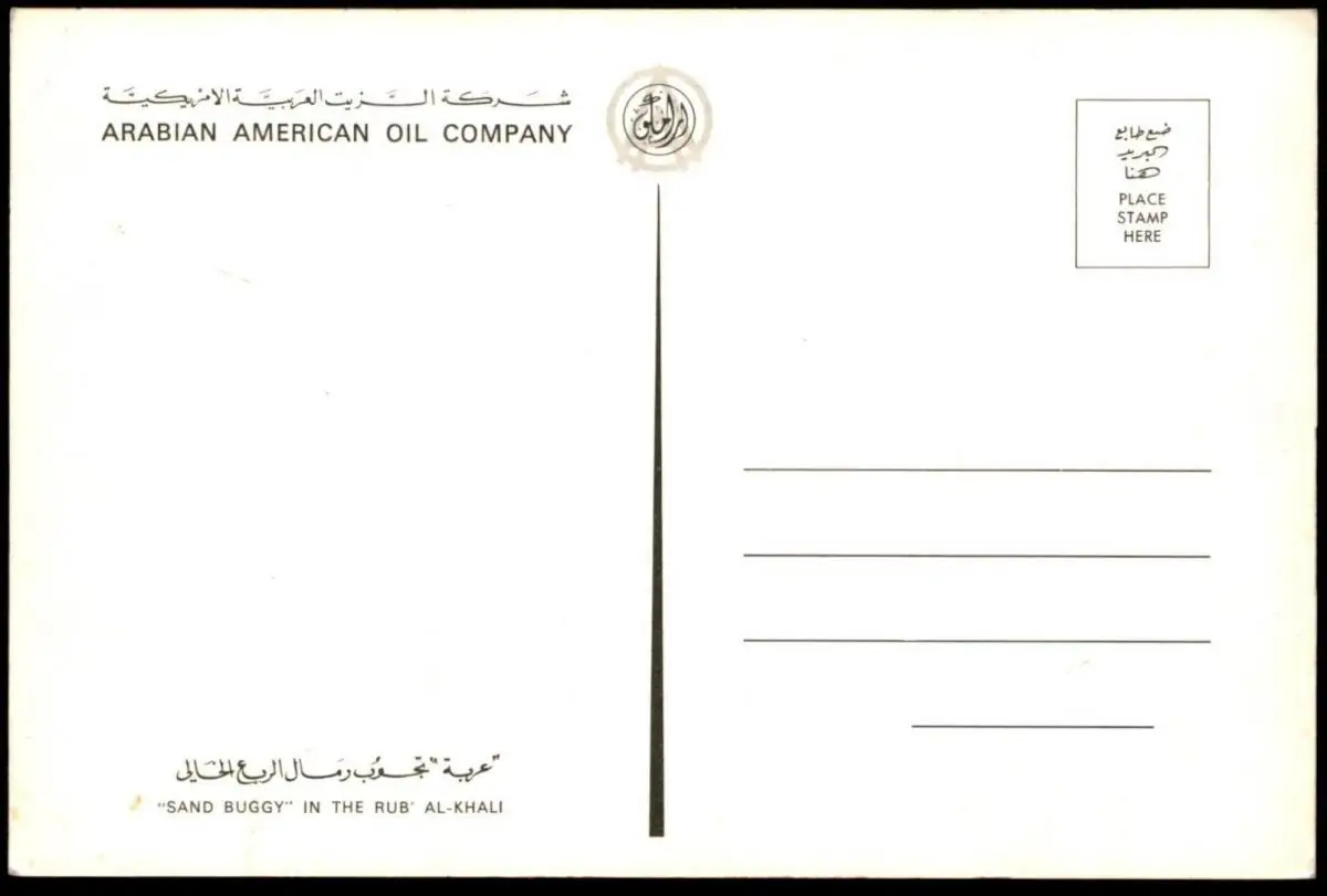 ÄLTERE POSTKARTE SAND BUGGY IN THE RUB AL-KHALI ARABIAN AMERICAN OIL COMPANY