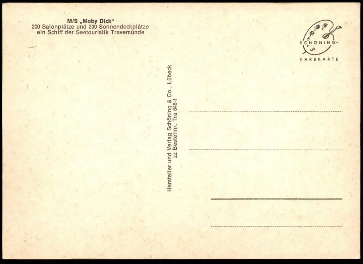 ÄLTERE POSTKARTE SCHIFF M.S. MOBY DICK SEETOURISTIK LÜBECK TRAVEMÜNDEVerlag: Schöning, Lübeck