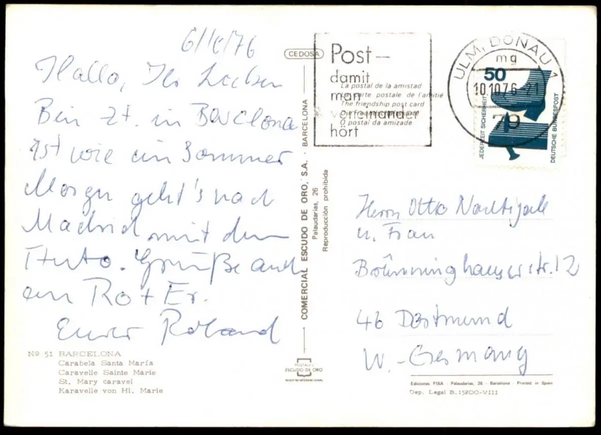 Gelaufen: 10.10.1976 mit Stempel Ulm nach Dortmund