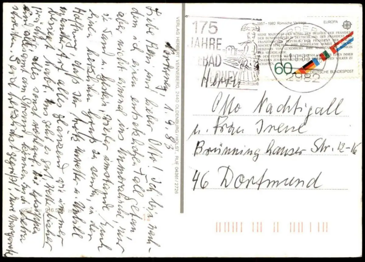 Gelaufen: 01.09.1983 mit Stempel Norderney nach Dortmund