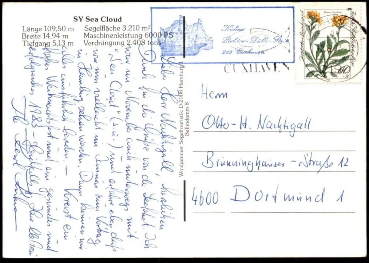 Gelaufen: 13.12.1982 mit Stempel Cuxhaven nach Dortmund