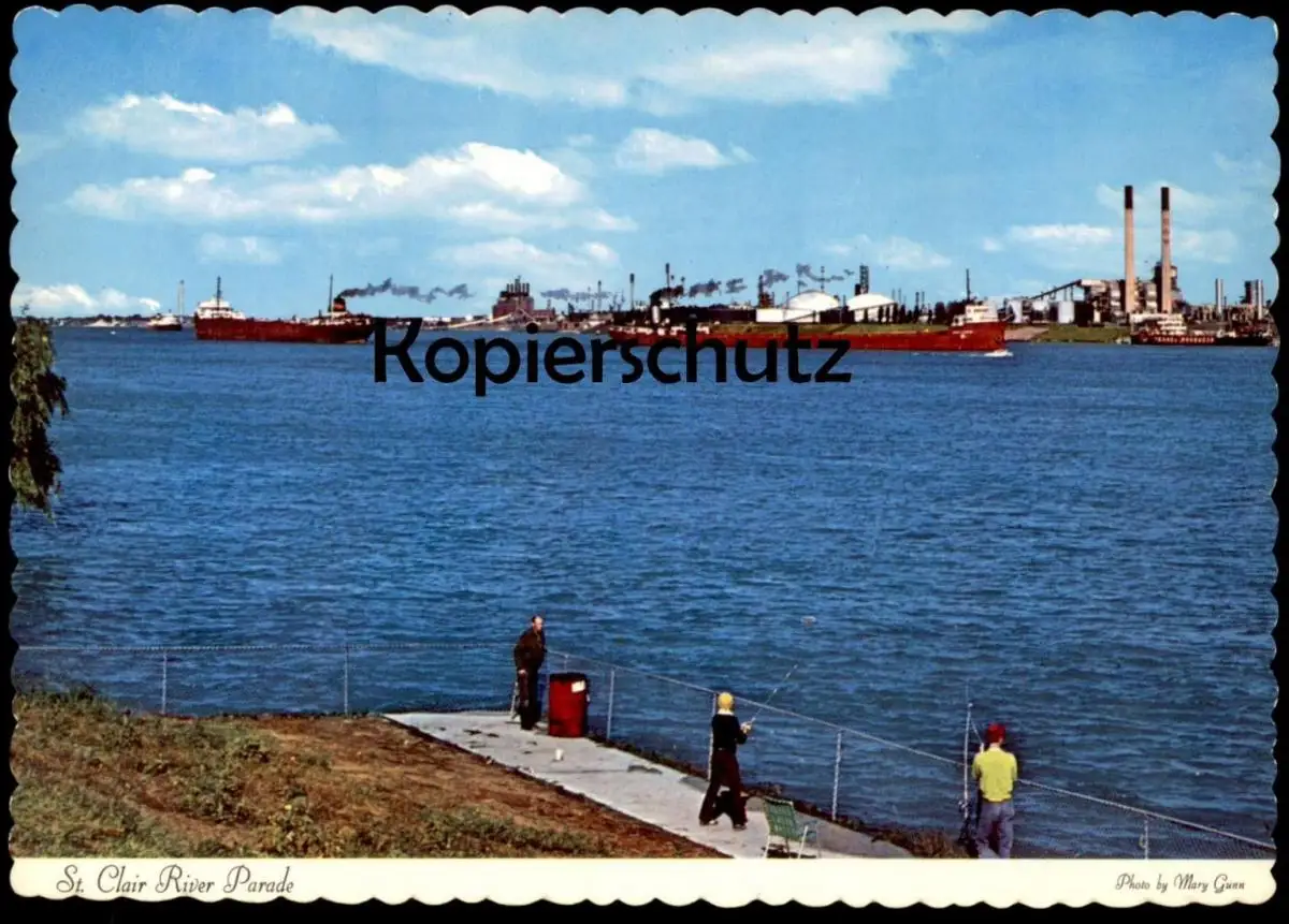 ÄLTERE POSTKARTE ST. CLAIRE RIVER PARADE CARGO SHIPS U.S. STEEL OWNED BY HENRY H. ROGERS NEXT UPSTREAM HARRY COULBY OWNED PICKANDS MATHER CO., INTERLAKE STEAMSHIP DIVISION FISHING MEN ANGLERVerlag: Hiawatha Card of Detroit, Ypsilanti, Michigan