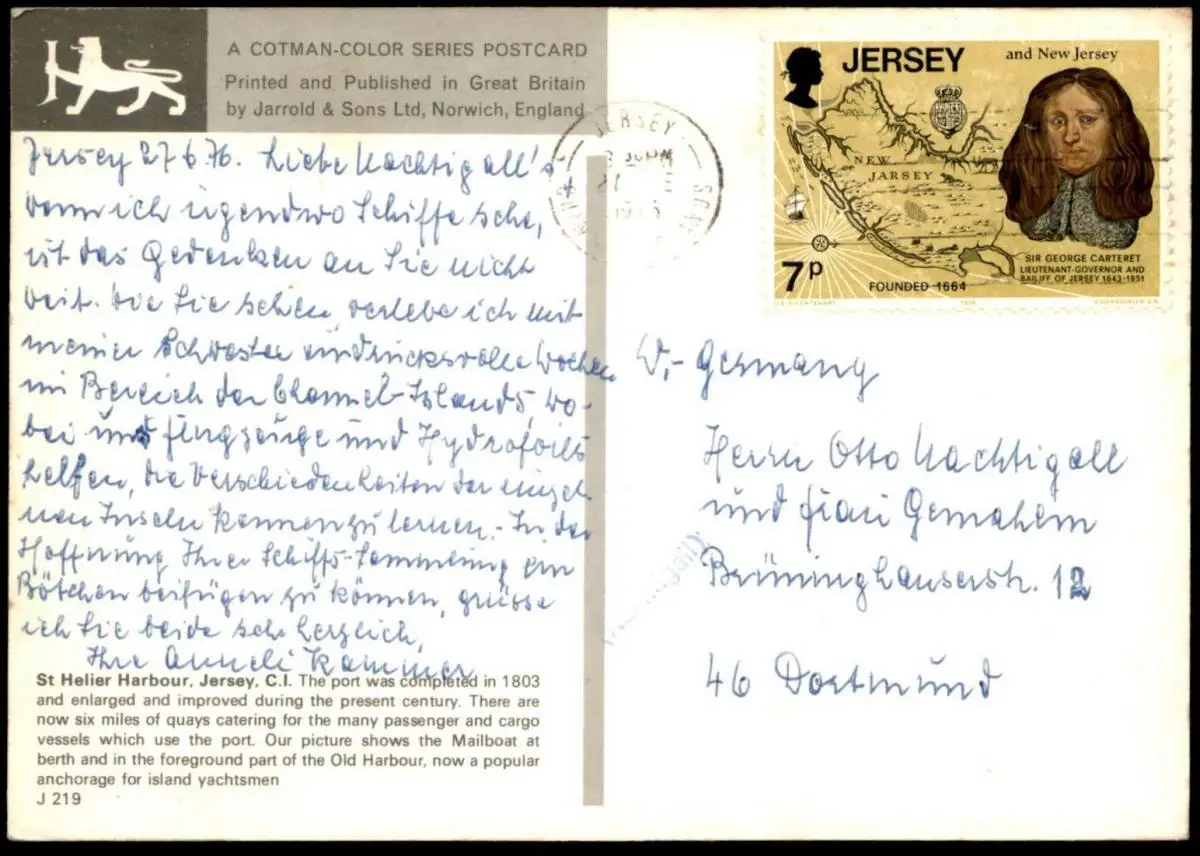 Gelaufen: 27.06.1976 mit Stempel Jersey nach Dortmund