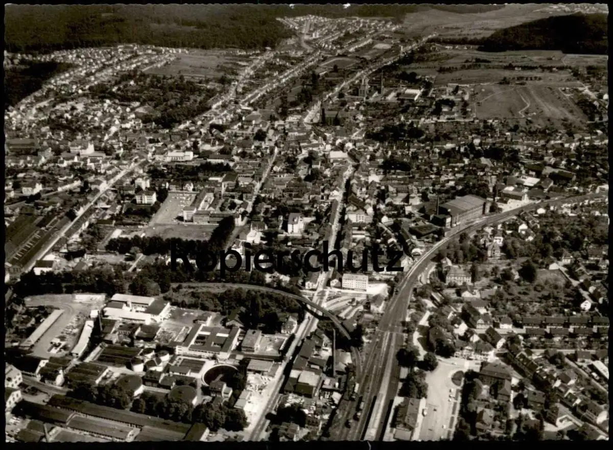 ÄLTERE POSTKARTE ST. INGBERT LUFTBILD PANORAMA FLIEGERAUFNAHME U. A. BAHNHOF ZÜGEVerlag: E. Schwan, Buchhandlung - Leihbücherei, St. IngbertGelaufen: neinErhaltung (s. Scan): sehr gut / 918331