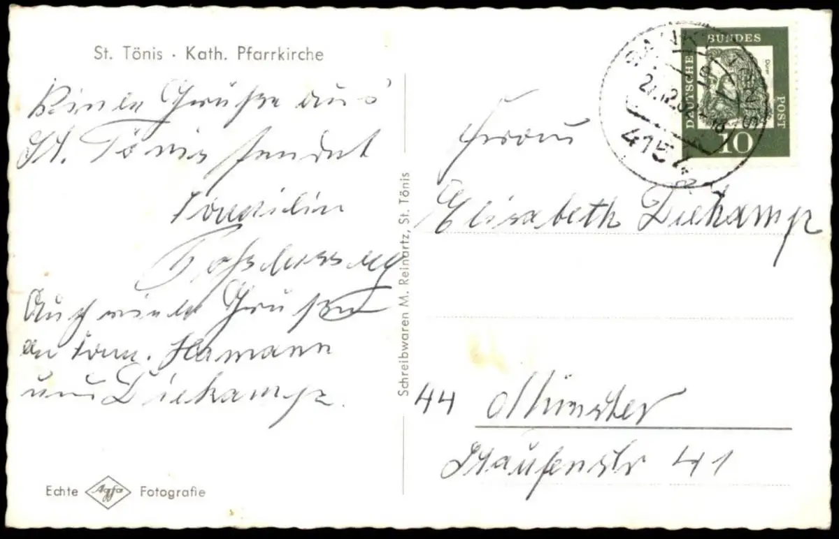 Gelaufen: 27.12.1962 mit Stempel St. Tönis nach Münster