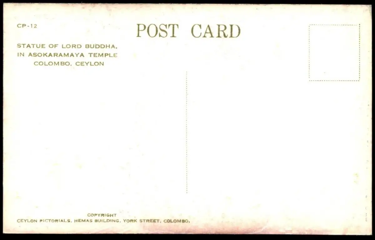 ÄLTERE POSTKARTE STATUE OF LORD BUDDHA ASOKARAMAYA TEMPLE COLOMBO CEYLON SRI LANKA Ansichtskarte cpa postcard AK