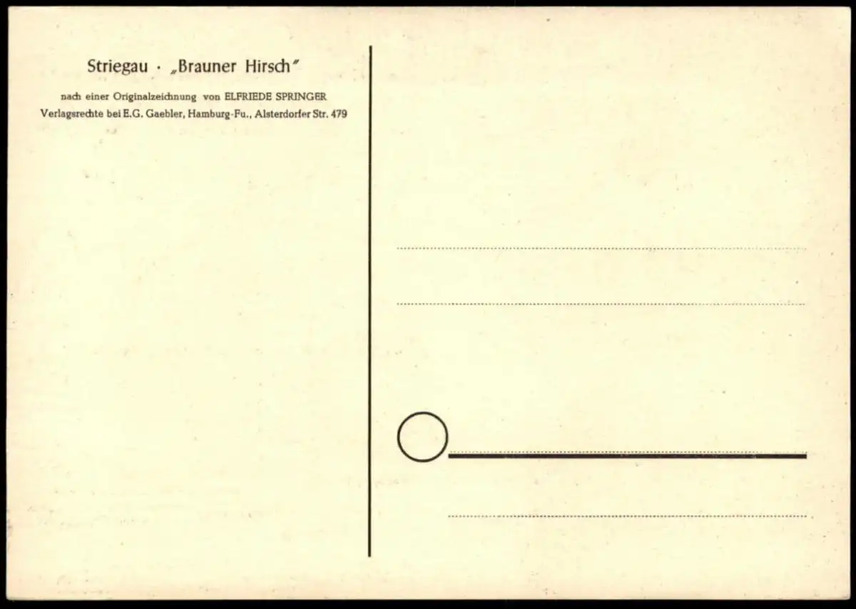 ÄLTERE POSTKARTE STRIEGAU BRAUNER HIRSCH NACH EINER ORIGINALZEICHNUNG VON ELFRIEDE SPRINGER STRZEGOM SCHLESIEN postcard