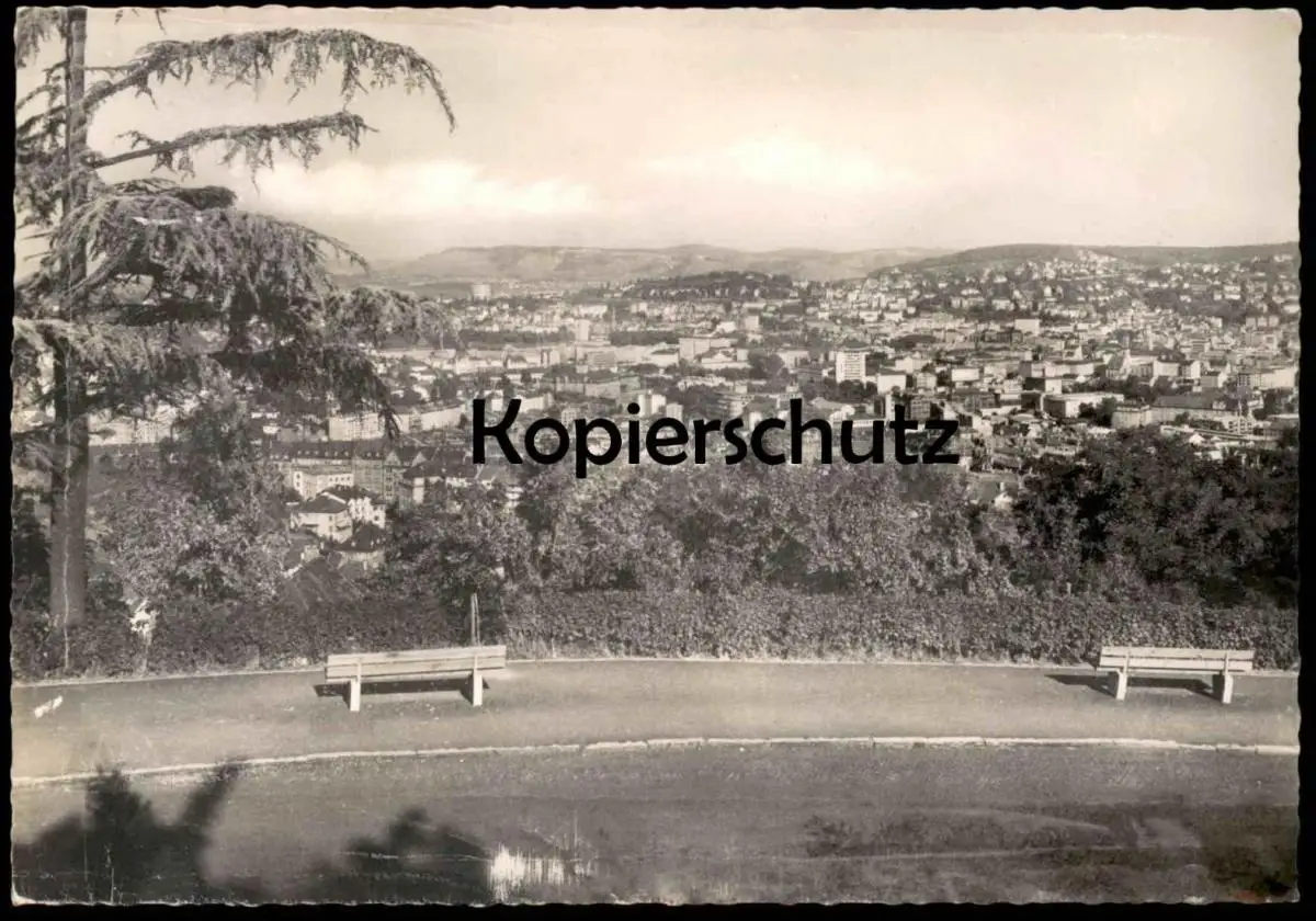 ÄLTERE POSTKARTE STUTTGART 1955 PANORAMA SITZBÄNKE TOTALANSICHT Ansichtskarte AK cpa postcard