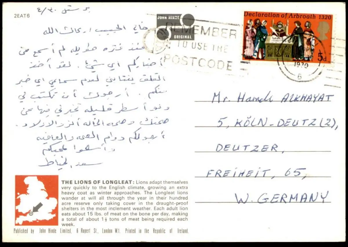 Gelaufen: xx.xx.1970 mit Briefmarke Declaration of Arbroath 1320 nach Köln