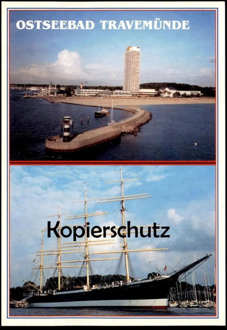 ÄLTERE POSTKARTE LÜBECK-TRAVEMÜNDE MIT SEGELSCHULSCHIFF PASSAT & LEUCHTTURMVerlag: Birgit Schneider, Timmendorfer Strand