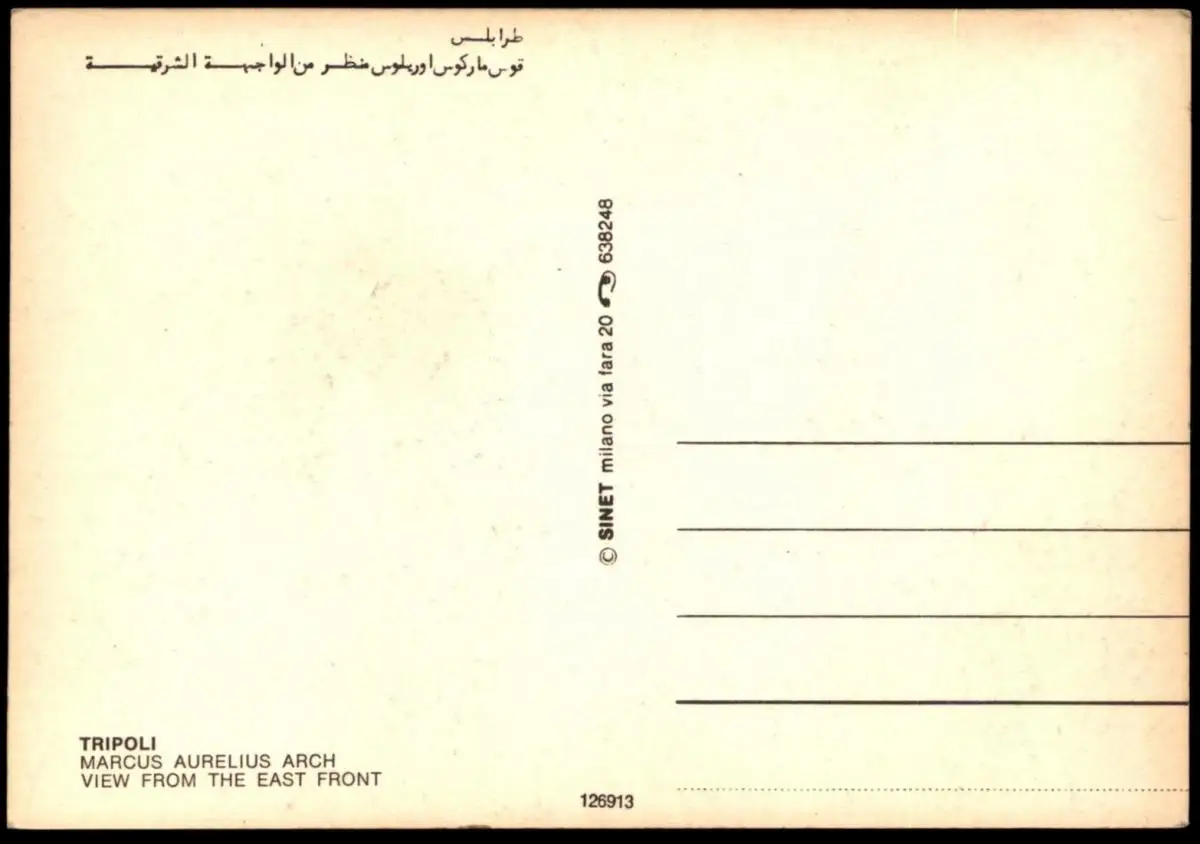 ÄLTERE POSTKARTE TRIPOLI MARCUS AURELIUS ARCH VIEW FROM THE EAST FRONTVerlag: Sinet, Milano