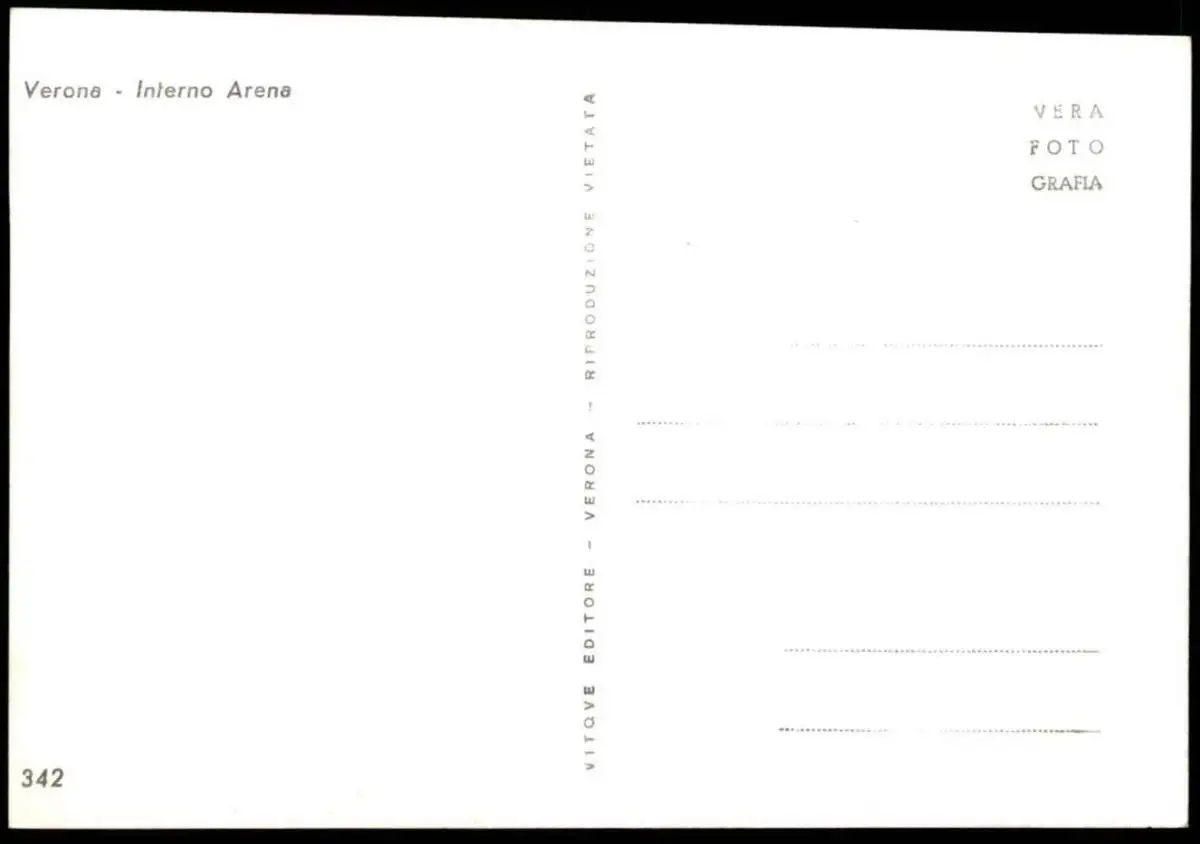 ÄLTERE POSTKARTE VERONA INTERNO ARENAVerlag: Vitqve Editore, VeronaGelaufen: neinErhaltung (s. Scan): mittel, oberer Rand beschnitten / 916213