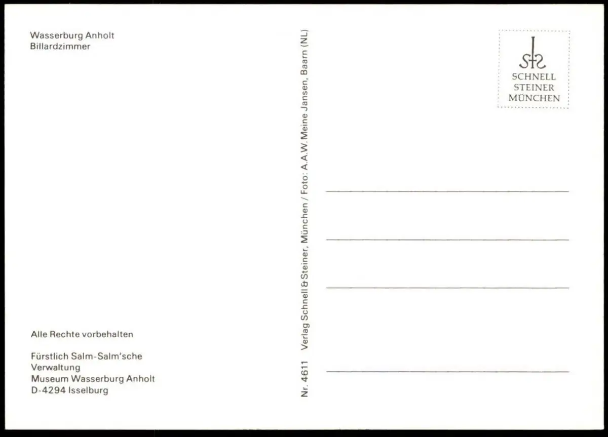 ÄLTERE POSTKARTE WASSERBURG ANHOLT BILLARDZIMMER ISSELBURGVerlag: Schnell & Steiner, München, Foto A. A. W. Meine Jansen, Baarn, NL