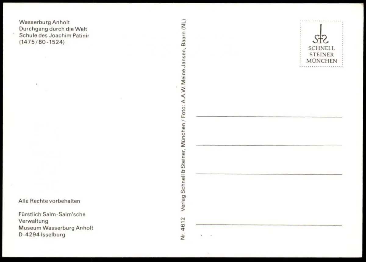 ÄLTERE POSTKARTE WASSERBURG ANHOLT DURCHGANG DURCH DIE WELT JOACHIM PATINIR 1475/80 ISSELBURGVerlag: Schnell & Steiner, München, Foto A. A. W. Meine Jansen, Baarn, NL