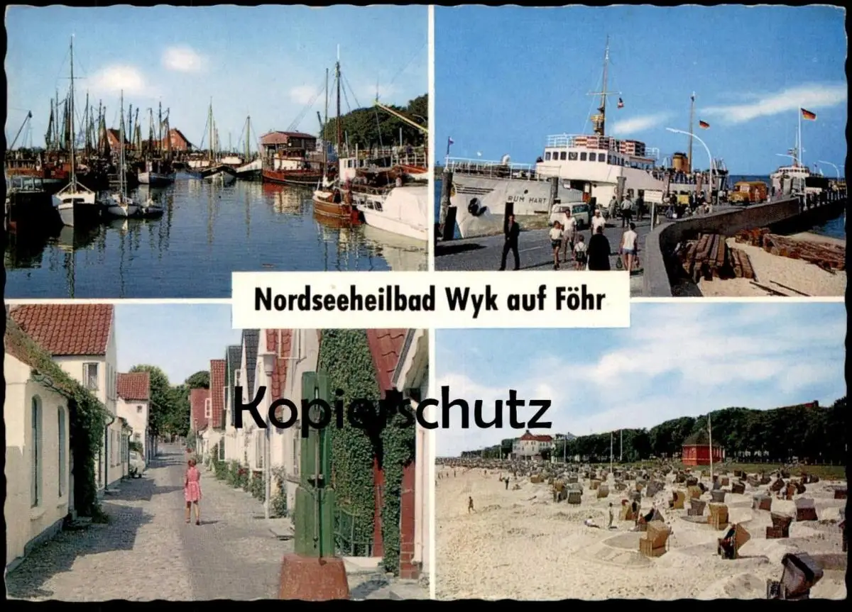 ÄLTERE POSTKARTE WYK AUF FÖHR SCHIFF RÜM HART LANDUNGSBRÜCKE HAFFE CARL-HAEBERLIN-STRASSE Ansichtskarte AK postcard cpa
