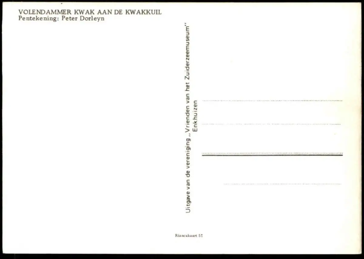 ÄLTERE POSTKARTE ZUIDERZEEMUSEUM ENKHUIZEN SEGELSCHIFF VOLENDAMMER KWAK AAN DE KWAKKUIL PENTEKENING: PETER DORLEYNVerlag: Vereniging Vrieden van het Zuiderzeemuseum EnkuizenGelaufen: neinErhaltung (s. Scan): gut, Ecken unten rechts minimal bestoßen / 917846