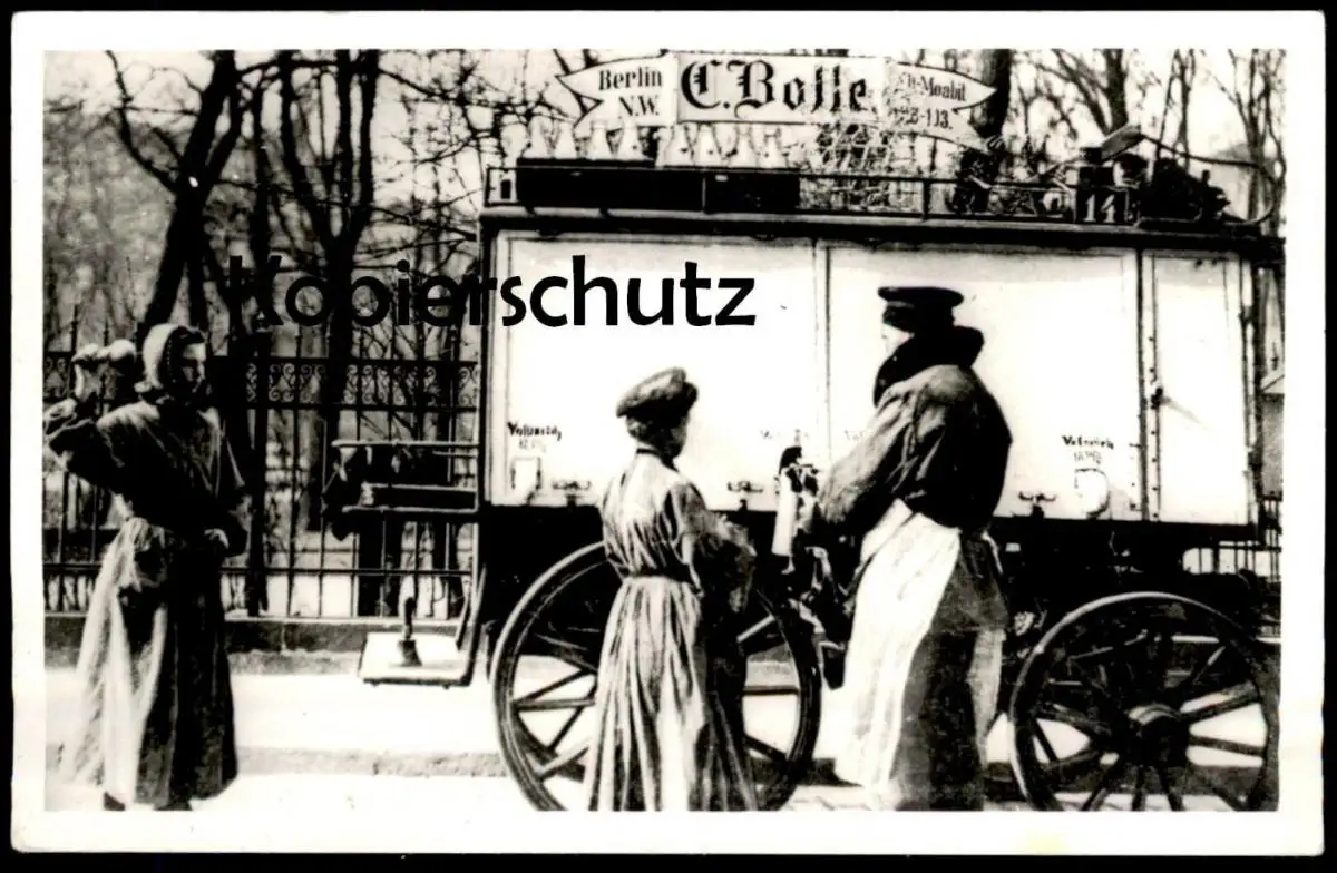 ÄLTERES REPRO FOTO BERLIN MILCHWAGEN C. BOLLE KLINGEL-BOLLE VOLLMILCH 18 PFENNIG MOABIT BERLIN ARCHIV FOTO RIECHEL photo
