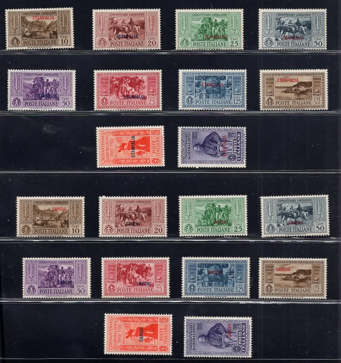 ** MNH - Ägäis - Garibaldi komplette Runde mit 130 verschiedenen Werten für die 13 Inseln ausgegeben - Briefmarken mit Vollgummi und guter Zentrierung - Seltenes Set Cod. 3083 / Web