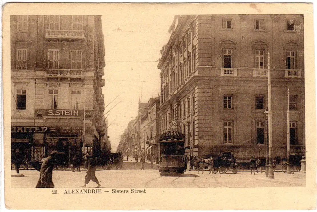 Ägypten, Alexandrie, Sisters Street m. Trambahn u. Geschäften, ungebr. sw-AK