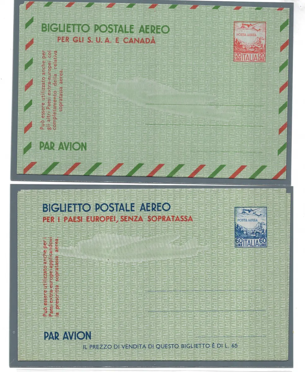 Postkarte - Luftbild in den Alpen Lire 60 und 120, die Serie von zwei neuen Aerogrammen in sehr gutem Erhaltungszustand - Schönes Set - Kat. euro 325 Cod. 3588/WEB