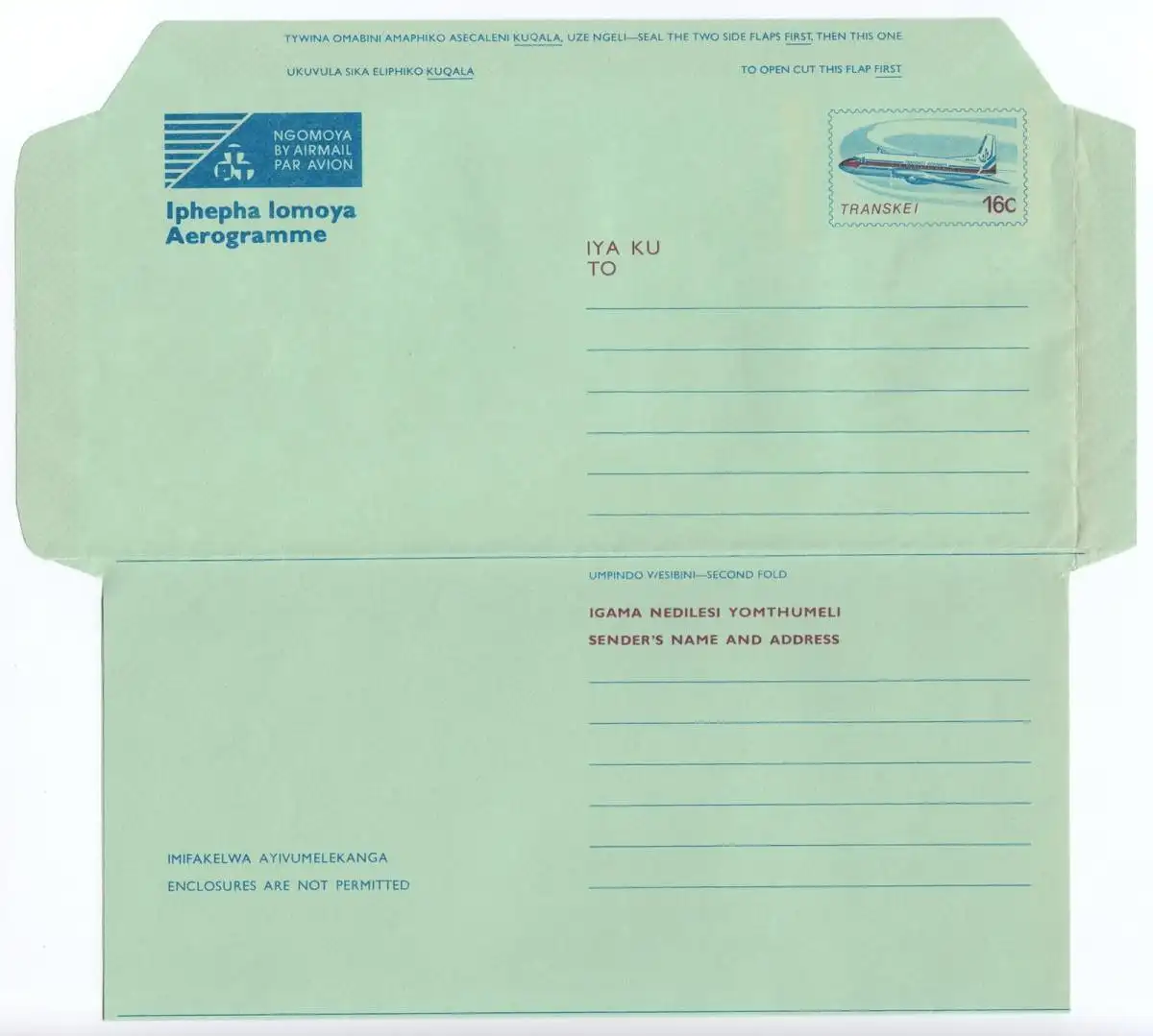 Aerogramm, Transkei, 1985 ** Nebenstempel: keine Anmerkungen: keine