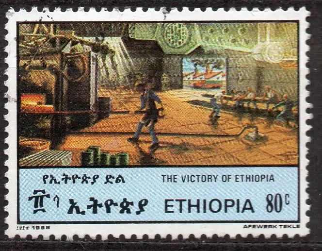 Äthiopien, Mi-Nr. 1299 gest., Gemälde: Der Sieg Äthiopiens durch Arbeit