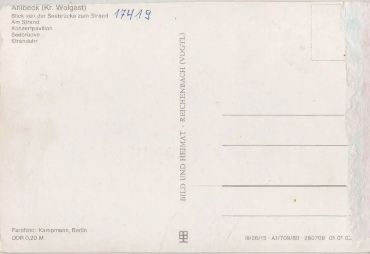 Postleitzahl:17419 (neu) / O 2252 (alt)