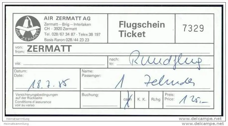 Air Zermatt AG 1985 - Rundflug