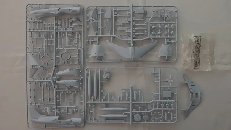 Es sind alle Einzelteile (Plastikbauteile) - bis auf Bauteil Nr. 4 - noch am Rahmen fixiert; Sichthülle wurde geöffnet.