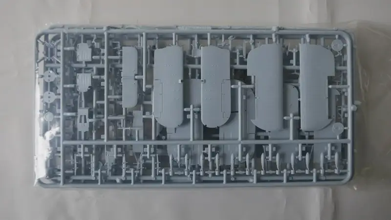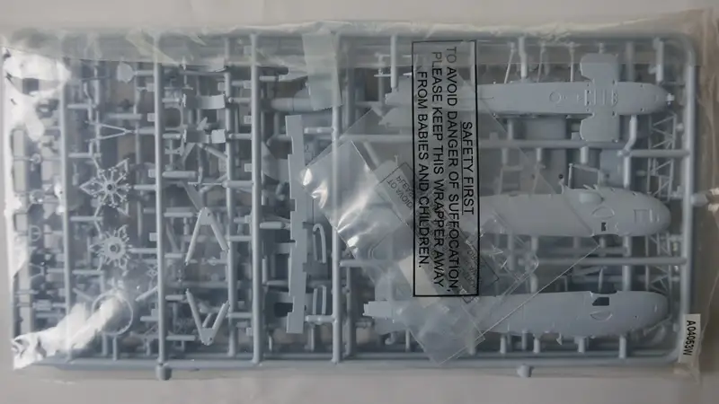 Einzelteile (Plastikbauteile) sind noch am Rahmen fixiert, Sichthülle wurde geöffnet.