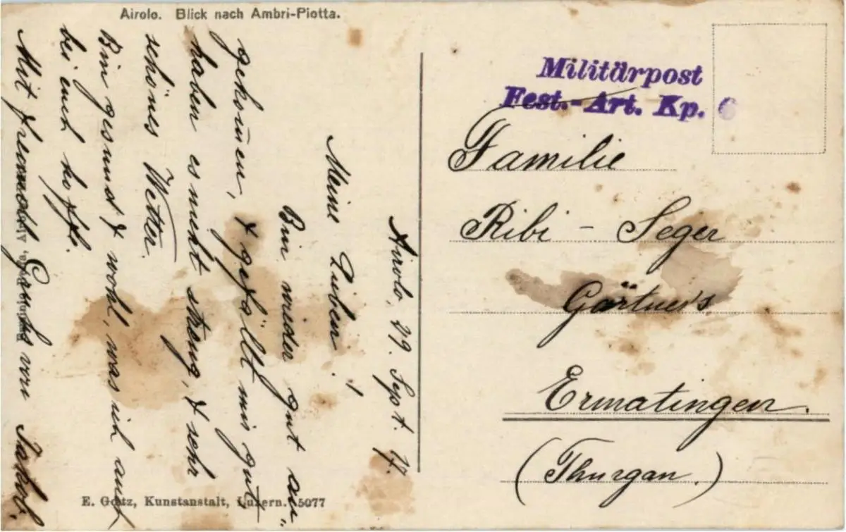 Danke. Alles Bestens. Können Sie mir allenfalls mitteilen, aus welchem Jahr die Postkarte stammt? Besten Dank.