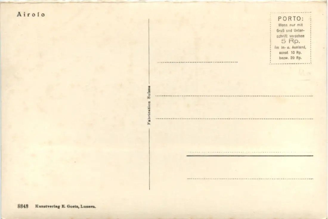Danke. Alles Bestens. Können Sie mir allenfalls mitteilen, aus welchem Jahr die Postkarte stammt? Besten Dank.