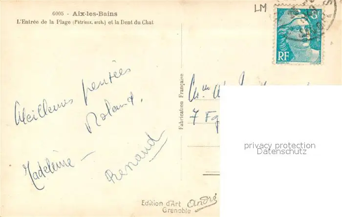 Aix-les-Bains Entree de la Plage et la Dent du Chat Aix-les-Bains postalisch gelaufen 1949 Erhaltung siehe scans [WerneD78] WernPID7