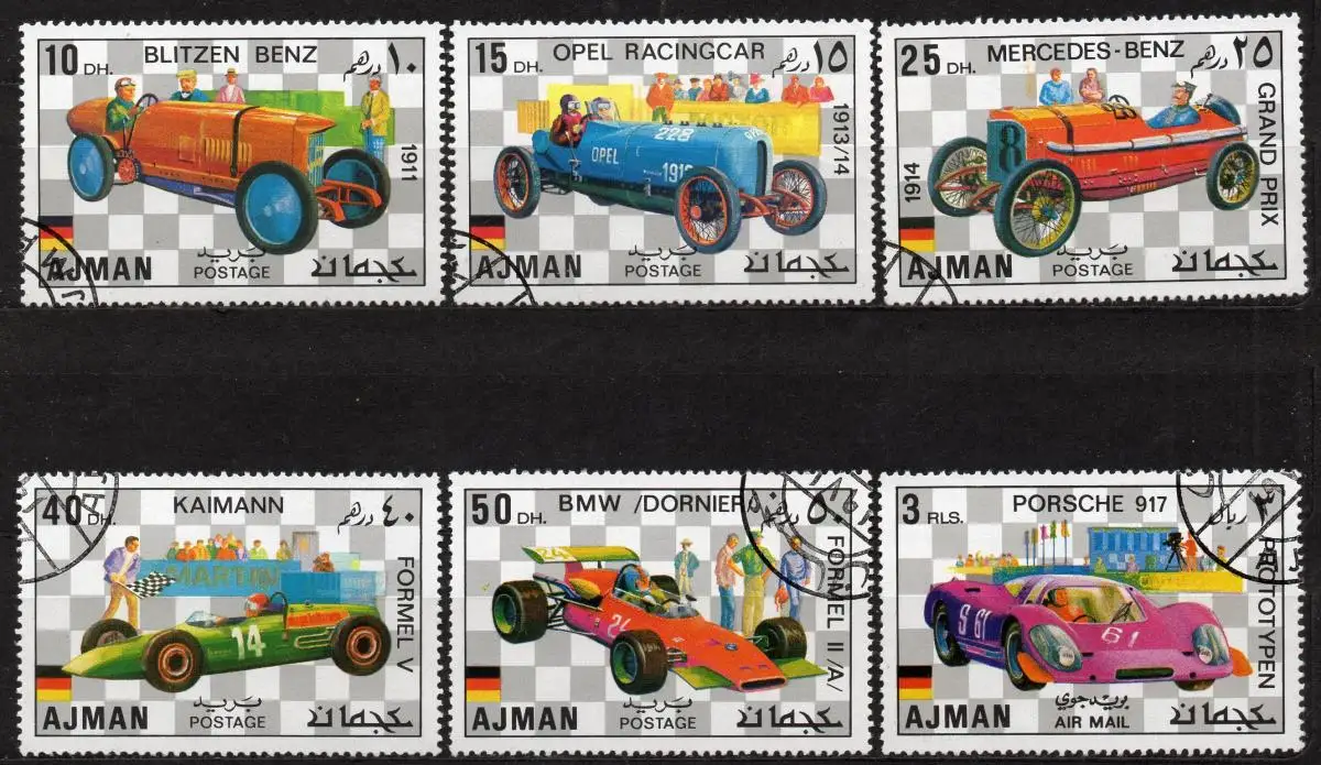 Ajman, Mi-Nr. 1117 - 1122 gest., kompl., Rennwagen