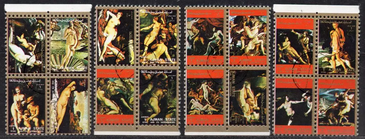 Ajman, Mi-Nr. 2571 - 2586 gest., kompl., Aktgemälde (Kleinformat)