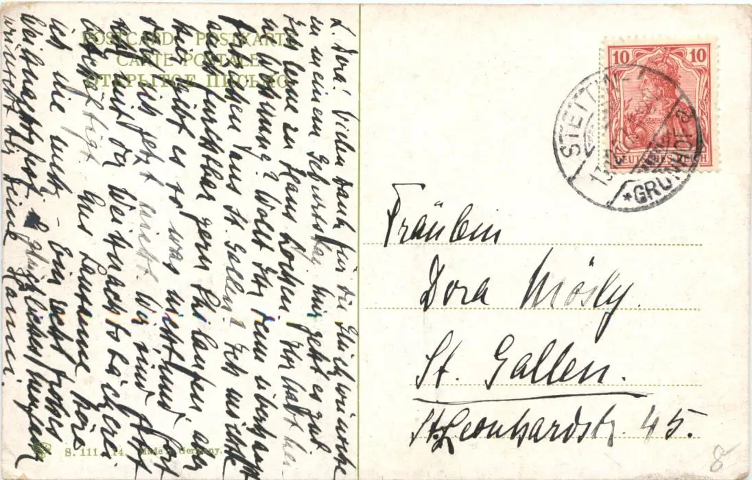 Ak gelaufen in Stettin Grünhof in die Schweiz -679910
