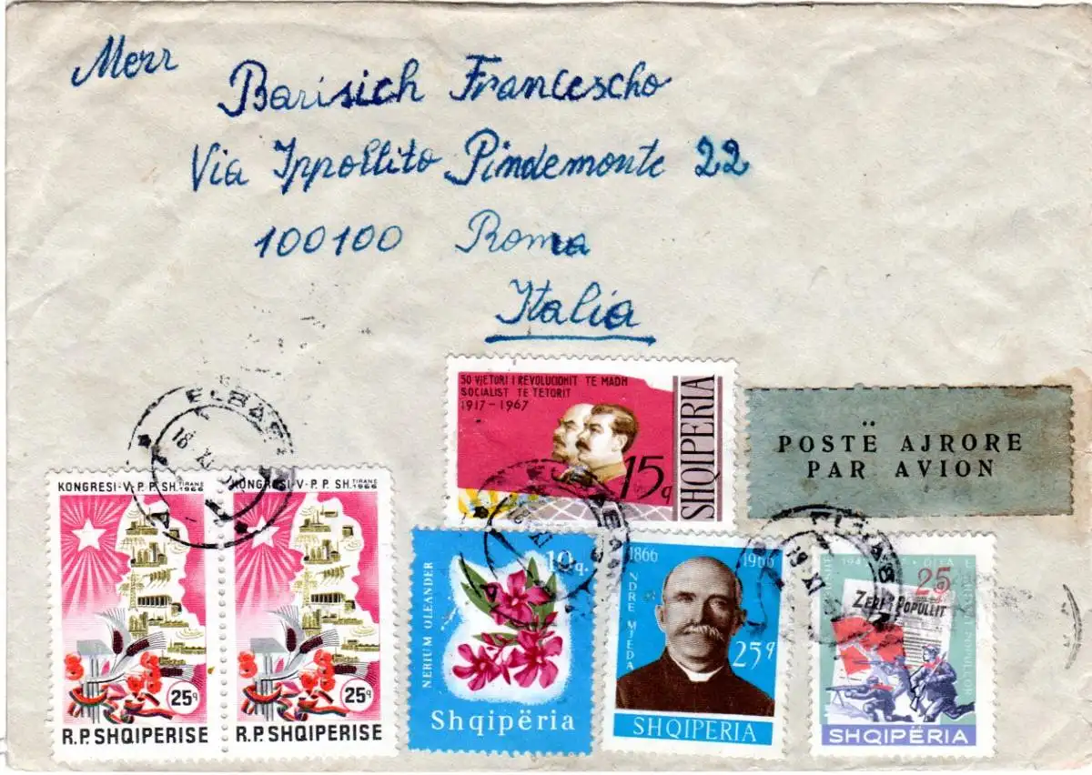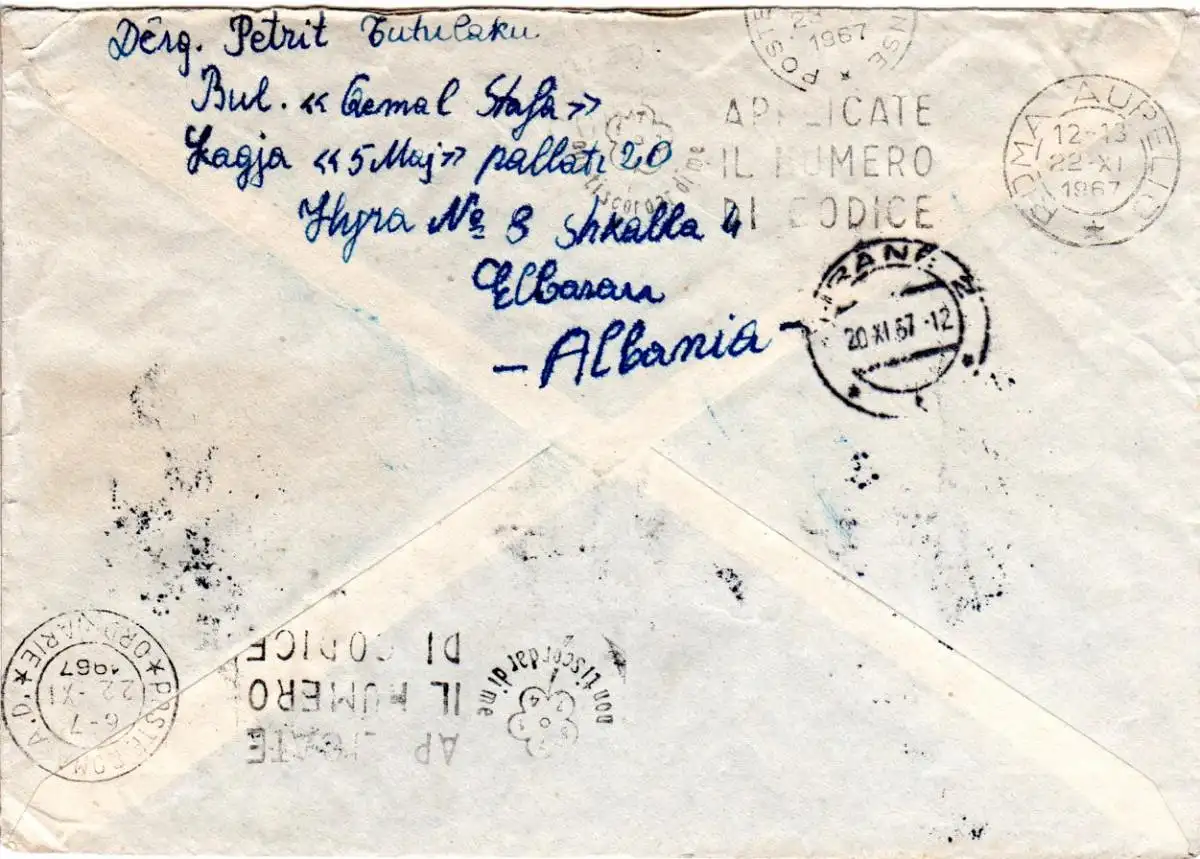 Albanien 1967, 6 Marken auf Luftpost Brief v. Elbasan n. Italien